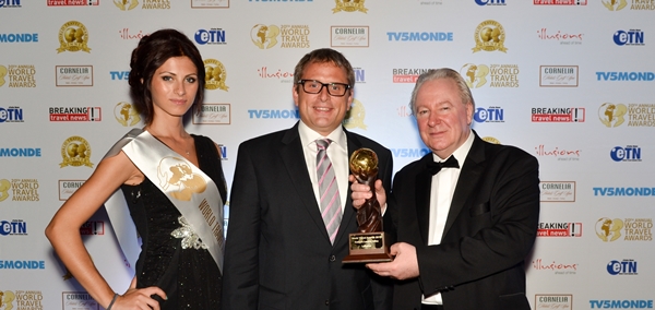Στη φωτογραφία: Ο κύριος Graham E. Cooke, Πρόεδρος και Ιδρυτής των World Travel Awards (δεξιά) κατά την απονομή του βραβείου, στον Γενικό Διευθυντή της Lufthansa στην Τουρκία, κύριο Stefan Loecherbach.
