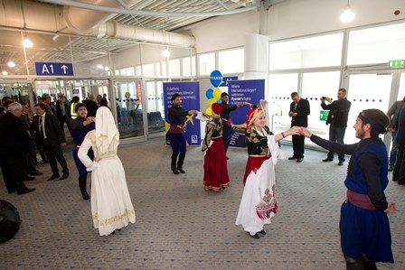 Σε εκδήλωση που πραγματοποιήθηκε χθες 1/4/2014 στην αίθουσα αναχωρήσεων του ΔΑΑ, εγκαινιάστηκε το πρώτο δρομολόγιο του αερομεταφορέα από την τρίτη βάση του στην Ελλάδα. Στην εκδήλωση παραβρέθηκαν εκπρόσωποι του Διεθνούς Αερολιμένα Αθηνών και της αεροπορικής εταιρείας Ryanair. Ένα κρητικό συγκρότημα με λύρα και χορευτές, αλλά και ένα ιρλανδικό ντουέτο διασκέδασαν τους συμμετέχοντες, δημοσιογράφους αλλά και επιβάτες, στην εκδήλωση.