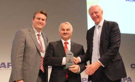 capa_turkishΗ Turkish Airlines κατέκτησε τον τίτλο της Αεροπορικής Εταιρείας της Χρονιάς, στην 11η τελετή βραβείων αριστείας CAPA Aviation Awards που διεξήχθη στο Άμστερνταμ. Ο κ. Temel Kotil, PhD, πρόεδρος και διευθύνων σύμβουλος της Turkish Airlines παρέλαβε το βραβείο από τον πρόεδρο του διοικητικού συμβουλίου της CAPA, Peter Harbison, κατά τη διάρκεια της εκδήλωσης απονομής.