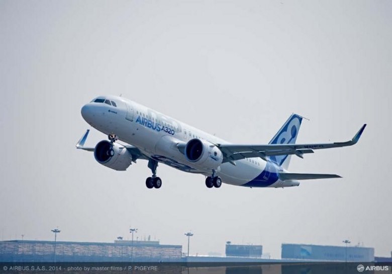 Τη πρώτη του πτήση πραγματοποίησε το πρώτο A320neo από το Αεροδρόμιο της Toulouse–Blagnac της Γαλλίας, στις 12 το μεσημέρι σήμερα. Χειριστές του αεροσκάφους ήταν οι πιλότοι πειραματικών δοκιμών της Airbus, PhilippePellerin και EtiennedeMicheMalleray. Στο πιλοτήριο παρευρισκόταν επίσης και ο μηχανικός πειραματικών πτήσεων, Jean–PaulLambert. Τη πρόοδο της πτήσης παρακολούθησαν οι μηχανικοί πειραματικών πτήσεων ManfredBirnfeld και SandraBour–Schaeffer.