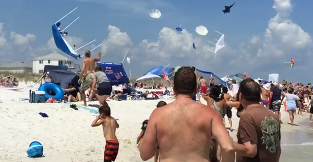 Μπορείτε τώρα να γελάτε, ή να μην σας φαίνεται τόσο σημαντικό, αλλά εάν ήσασταν εκείνη την ώρα στη συγκεκριμένη παραλία και ακούγατε τον τρομακτικό και εκκωφαντικό ήχο δύο μαχητικών αεροπλάνων πάνω από το κεφάλι σας, ενώ ομπρέλες, σκηνές και τσάντες είχαν σηκωθεί στον αέρα, ίσως να το ξανασκεφτόσασταν!