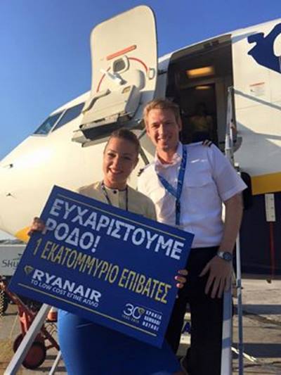 Η Ryanair γιόρτασε την μεταφορά ενός εκατομμυρίου επιβατών από/προς την Ρόδο απελευθερώνοντας θέσεις προς κράτηση από 19.99€, για ταξίδια μεταξύ Αθήνας-Ρόδου τον Οκτώβριο και τον Νοέμβριο του 2015. Οι συγκεκριμένοι χαμηλοί ναύλοι είναι διαθέσιμοι προς κράτηση μέχρι τα μεσάνυχτα της Πέμπτης (3 Σεπτεμβρίου).