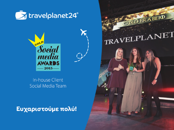 Η Travelplanet24 βραβεύτηκε στην τελετή των Social Media Awards 2015 στην κατηγορία «In-house Client Social Media Team» με βραβείο GOLD για την καλύτερη ομάδα social media μέσα σε εταιρεία.