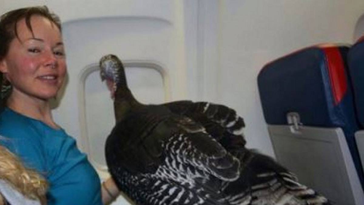 Η Jodie Smalley από το Seattle εθεάθη να ταξιδεύει με το αεροπλάνο για το Salt Lake, ώστε να περάσει τις εορτές των Χριστουγέννων, παρέα με την αγαπημένη της… γαλοπούλα της, την οποία δεν μπορεί να αποχωριστεί ποτέ.