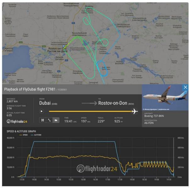 Αεροσκάφος Boeing 737 της αεροπορικής εταιρείας Flydubai του Ντουμπάι, που πραγματοποιούσε την πτήση από το Ντουμπάι προς το Ροστόφ της Ρωσίας, συνετρίβη τα ξημερώματα (2.50 ώρα Ελλάδος) κατά την προσγείωση του στο αεροδρόμιο Rostov-on-Don στο Ροστόφ στην νότια Ρωσία.
