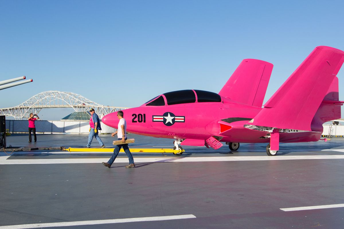 Μ’ ένα ροζ μαχητικό αεροσκάφος F9F-8 “Cougar” γίνεται η ενημέρωση κατα του καρκίνου του μαστού στο Λέξινγκτον των ΗΠΑ.