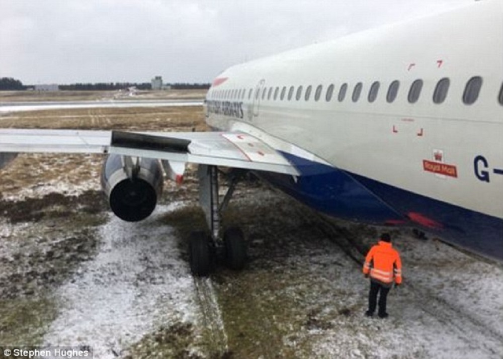 Δύσκολες στιγμές πέρασαν οι επιβάτες πτήσης της British Airways καθώς το αεροσκάφος γλίστρησε από τον διάδρομο λόγω του χιονιού.