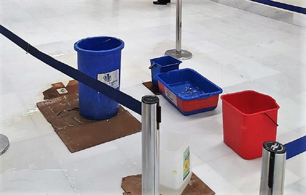 Όπως φαίνεται στις φωτογραφίες που δημοσίευσε η ιστοσελίδα kriti24.gr, στο τμήμα της επέκτασης του αεροσταθμού, λίγα μέτρα πριν από τον έλεγχο των χειραποσκευών, είχαν στηθεί… κουβάδες καθώς έσταζε το ταβάνι λόγω της νεροποντής που είχε ξεσπάσει στην περιοχή το Σάββατο.