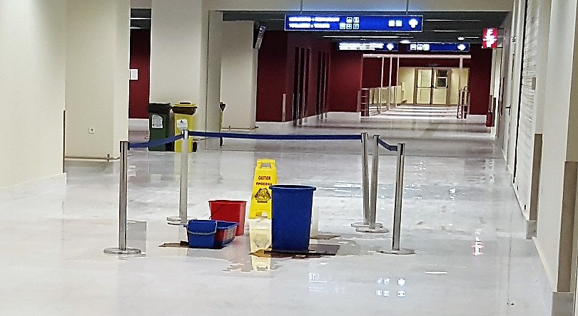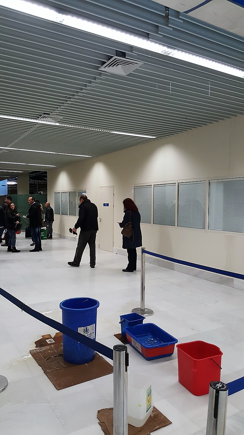 Αίσθηση έχουν προκαλέσει οι φωτογραφίες που έχουν διαρρεύσει στο Διαδίκτυο και δείχνουν να τρέχει νερό από το ταβάνι του αεροδρομίου Χανίων.