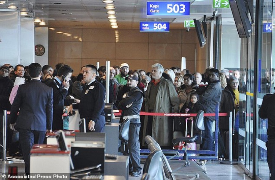 Όπως αναφέρει το ειδησεογραφικό πρακτορείο Associated Press, το πλήρωμα καμπίνας της Turkish Airlines βρήκε τις λέξεις “βόμβα στο Τορόντο” στον τοίχο του μπάνιου στην πτήση ΤΚ-17 τη στιγμή που ήταν έτοιμο το αεροσκάφος για να απογειωθεί από το κεμάλ Ατατούρκ με προορισμό το Διεθνές Αεροδρόμιο του Τορόντο.