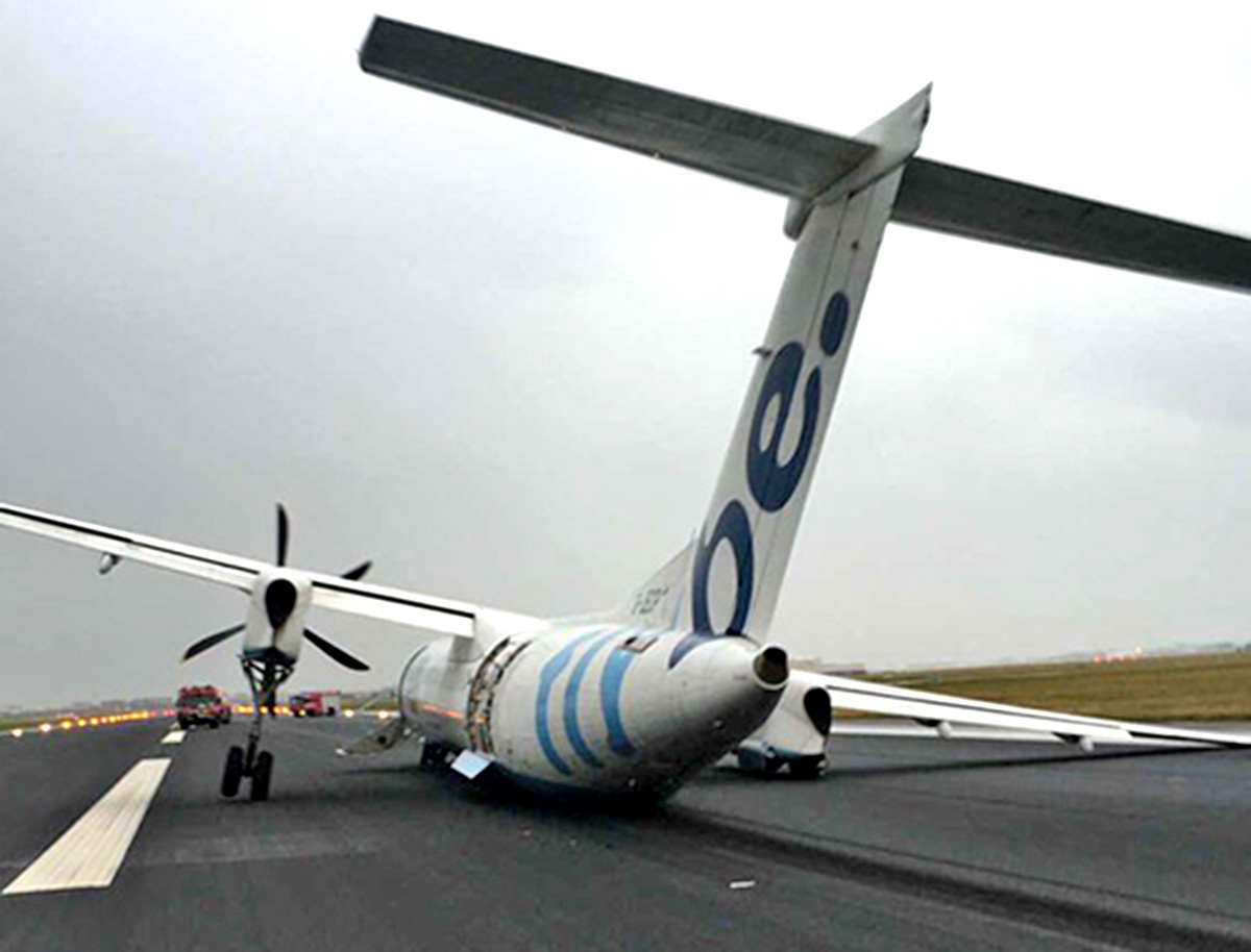 Με το… φτερό κατέληξε να προσγειωθεί στο αεροδρόμιο του Σίπχολ, στο Άμστερνταμ, ένα αεροπλάνο DHC-8 της εταιρείας Flybe, εν μέσω καταιγίδας, χωρίς ευτυχώς κανείς από τους 59 επιβάτες του να τραυματιστεί.