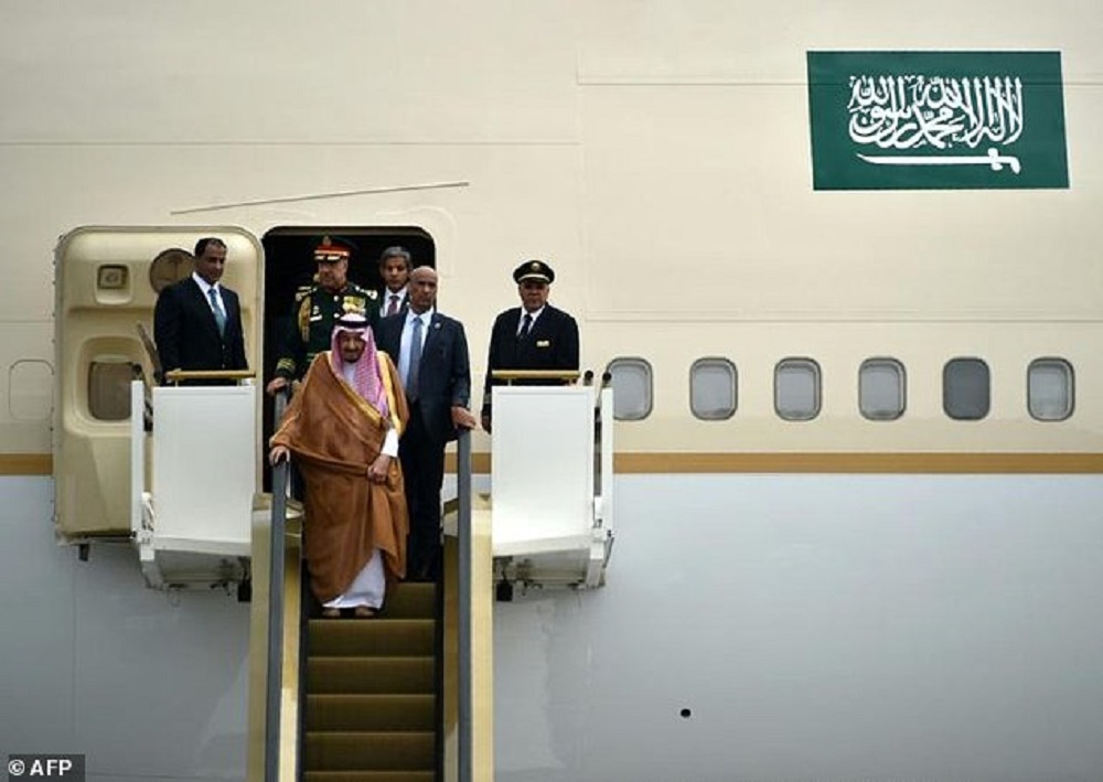 Συνοδευόμενος από αντιπροσωπεία χιλίων ανθρώπων, ανάμεσά τους πρίγκιπες και υπουργοί, ο μονάρχης έγινε δεκτός στο αεροδρόμιο της Τζακάρτας από τον Ινδονήσιο πρόεδρο Τζόκο Ουιντόντο και τιμητική φρουρά.