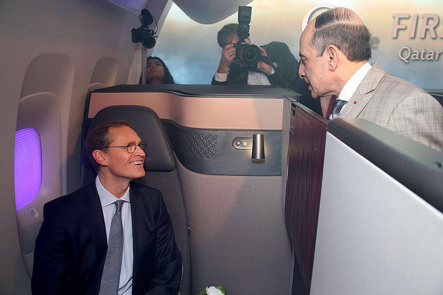 Η Qatar Airways διοργάνωσε ειδική συνέντευξη Tύπου για να παρουσιάσει την πολύ-αναμενόμενη και επαναστατική νέα Business Class καμπίνα της στα ΜΜΕ και την ταξιδιωτική βιομηχανία, στο πλαίσιο της έκθεσης ITB στο Βερολίνο. Με πρότυπα τα οποία δεν έχουν εφαρμοστεί ποτέ ξανά στα business ταξίδια, οι ιδιωτικές και με δυνατότητες εξατομίκευσης σουίτες, που έχουν ονομαστεί Qsuite, φέρνουν μια σειρά από πρωτιές στην κατηγορία premium ταξιδιών, αναδιαμορφώνοντας τις προσδοκίες των business ταξιδιωτών παγκοσμίως.