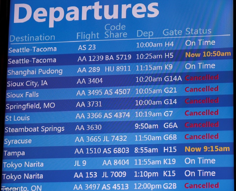 Μεταξύ των ακυρώσεων της Τρίτης περιλαμβάνονται περίπου εκατοντάδες πτήσεις των Southwest Airlines, JetBlue και American Airlines.