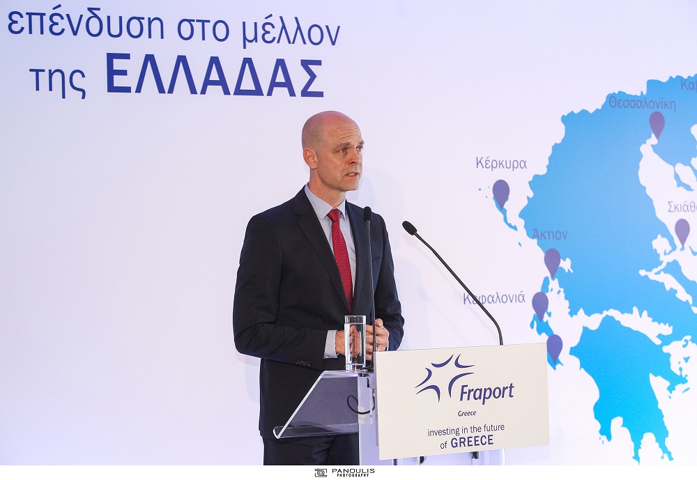 «Πριν από δύο ημέρες, πετύχαμε κάτι που πολλοί θεωρούσαν αδύνατον, αναλάβαμε την λειτουργία 14 περιφερειακών αεροδρομίων, σε μία μόνο στιγμή. Τη νύχτα της 10ης προς 11η Απριλίου». Τέλος, ο διευθύνων σύμβουλος της Fraport Greece αναφέρθηκε στις δράσεις που έχουν ήδη ξεκινήσει για το ερχόμενο καλοκαίρι, καθαρισμός, βελτίωση της σήμανσης, βελτίωση των εγκαταστάσεων υγιεινής και βελτίωση της πυρασφάλειας. Το δεύτερο ήμισυ της χρονιάς θα συνεχιστούν οι κατασκευαστικές εργασίες. Καταλήγοντας είπε πως οι 14 πύλες στην ηπειρωτική και νησιωτική Ελλάδα θα αποτελέσουν καταλύτη ανάπτυξης του ελληνικού τουρισμού, αλλά και άλλων επαγγελματικών κλάδων. Έχει αποδειχθεί ανά τον κόσμο, ότι αεροδρόμια με σωστή διαχείριση λειτουργούν ως δυναμικές «οικονομικές μηχανές» για τις περιοχές που εξυπηρετούν.