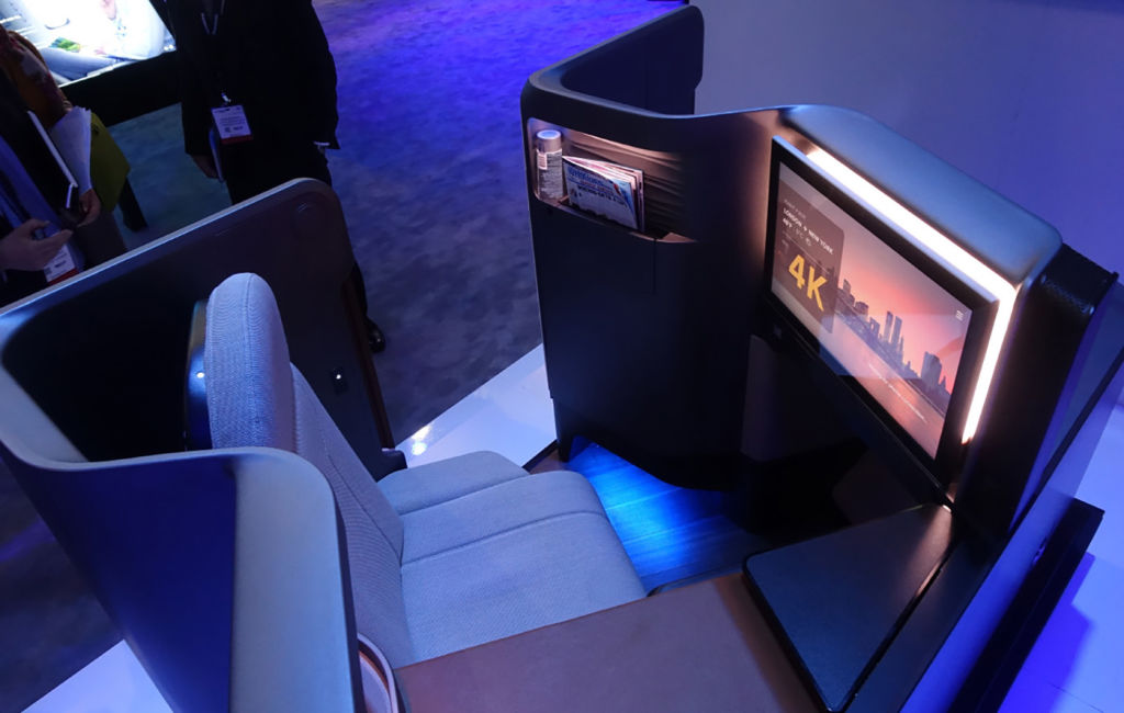 Η φυσική θέση βασίζεται στα υπάρχοντα μοντέλα της Β /Ε αλλά η τεχνολογία της Waterfront θέτει μια διαφορετική προσέγγιση. Το έκθεμα που παρουσιάστηκε είναι ένα 24-ιντσών, υψηλής ευκρίνειας 4Κ σύστημα ψυχαγωγίας στο οποίο οι επιβάτες θα συνδέονται μέσω μιας εφαρμογής στο smartphone τους ή με ένα tablet που θα προσφέρει ο ίδιος ο αερομεταφορέας μαζί με την θέση.