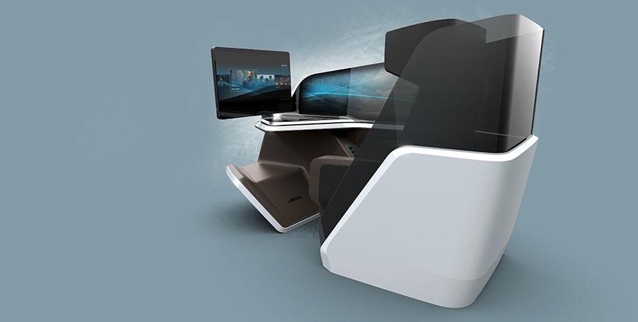 Ένα κουπέ που περιέχει ενεργειακές θύρες περιλαμβάνει ένα έξυπνο χώρο ώστε να μπορεί ένα Laptop να είναι συνδεδεμένο αλλά το κάθισμα να παραμένει τακτοποιημένο και το μάτι να μπορεί να κινηθεί και πέρα από την οθόνη μη δημιουργώντας ένα ασφυκτικό αίσθημα.