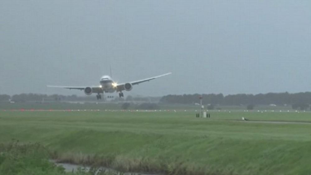 Αεροπλάνο επιχειρούσε να προσγειωθεί στο αεροδρόμιο του Άμστερνταμ, την Τετάρτη 13 Σεπτεμβρίου, εν μέσω της καταιγίδας Αϊλίν που έπληττε την πρωτεύουσα της Ολλανδίας.