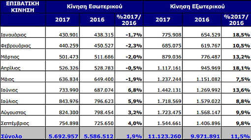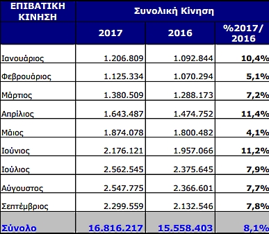 Η άνοδος αυτή οφείλεται τόσο στην καλή πορεία της κίνησης εσωτερικού, που σημείωσε αύξηση 4%, όσο και της κίνησης εξωτερικού, η οποία κινήθηκε επίσης ανοδικά, με ποσοστό 9,8%.