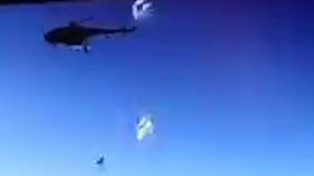 Οι πρώτες ρίψεις πραγματοποιήθηκαν χωρίς προβλήματα. Ωστόσο όταν έπεσε το τρίτο βαρέλι, το αλεξίπτωτό του μπερδεύτηκε στον έλικα, στην ουρά του ελικοπτέρου με αποτέλεσμα αυτό να προκαλέσει απώλεια σταθερότητας και να οδηγήσει στη συντριβή.