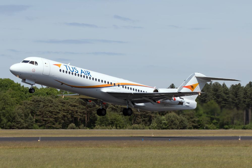 Οι πτήσεις του νέου δρομολογίου θα εκτελούνται από αεροσκάφη Fokker jet που προστέθηκαν πρόσφατα στον στόλο της εταιρείας. Τα Fokker προσφέρουν στους ταξιδιώτες απαράμιλλη άνεση με περισσότερο χώρο για τα πόδια, ενώ επιτρέπει την άμεση επιβίβαση των πτήσεων. Τα τζετ της Fokker θεωρούνται εξαιρετικά αξιόπιστα και γρήγορα αεροπλάνα και, εκτός από την TUS Airways, αποτελούν βασική προτίμηση και αναπόσπαστο κομμάτι του στόλου διεθνώς αναγνωρισμένων αερογραμμών.