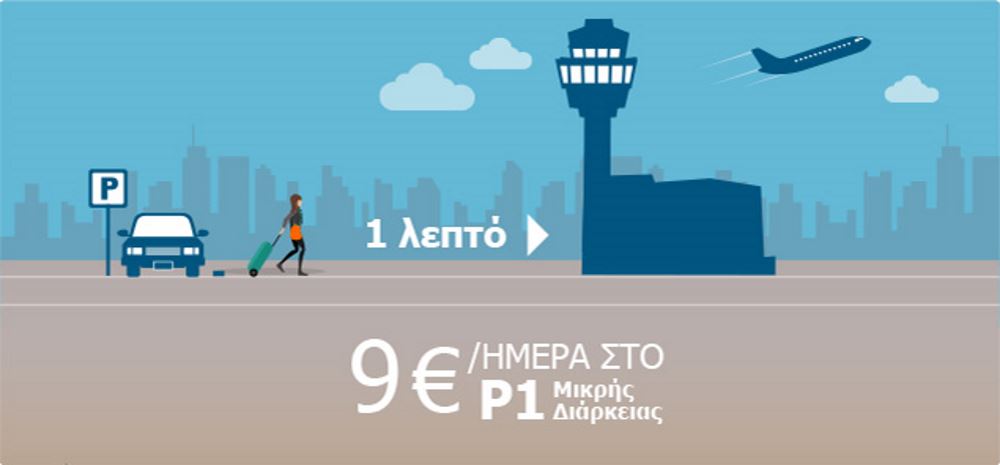 Μπορείτε τώρα να παρκάρετε με 9 ευρώ την ημέρα στον χώρο Ρ1 Μικρής Διάρκειας (1’ από τον Κύριο Αεροσταθμό).