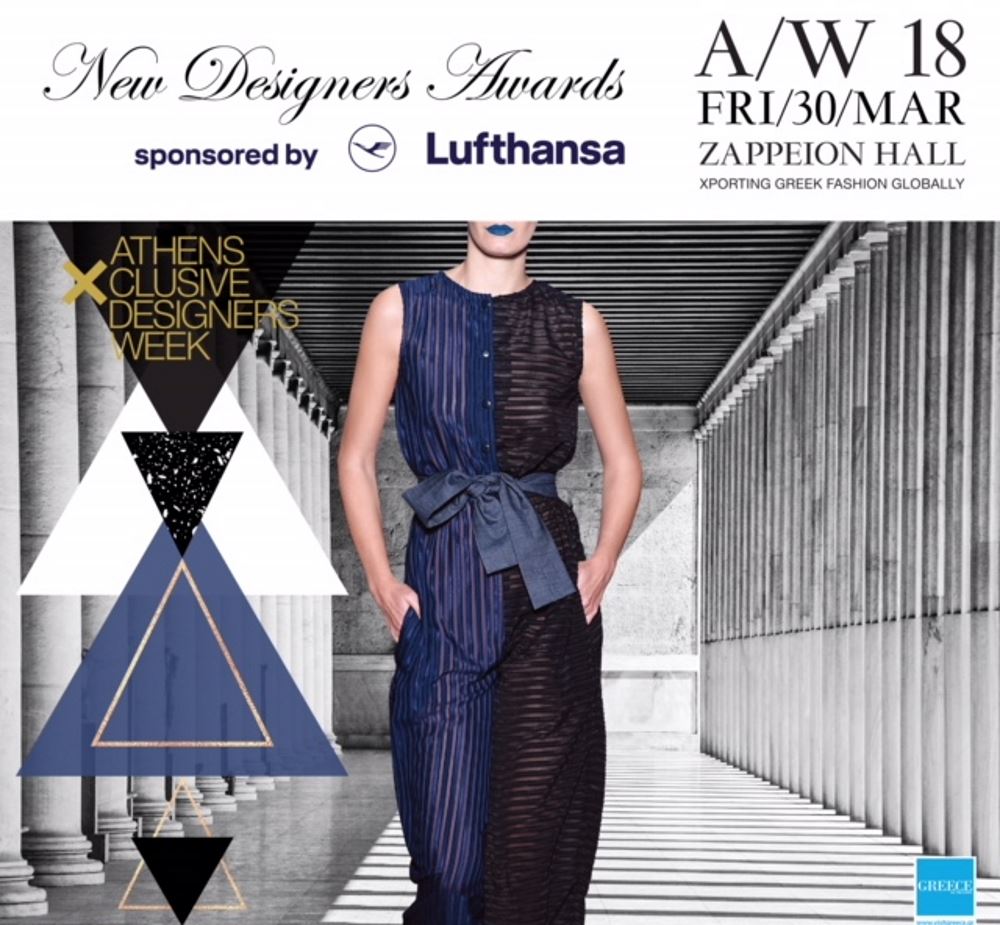 Η Lufthansa είναι ο μεγάλος χορηγός του θεσμοθετημένου διαγωνισμού New Designers Awards της 23ης Εβδομάδας Μόδας της Αθήνας, “Athens Xclusive Designers Week”, που φέτος θα πραγματοποιηθεί την Παρασκευή 30 Μαρτίου, στο Ζάππειο Μέγαρο.