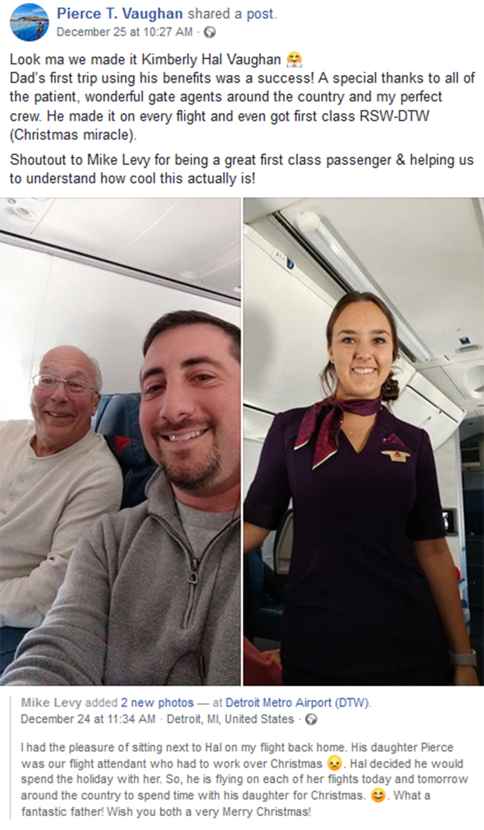 Η Πιρσς Βόγκαν ούσα αεροσυνοδός της Delta Airlines είχε πολλά χρόνια να γιορτάσει τα Χριστούγεννα με την οικογένειά της. Έτσι, ο πατέρας της, Χαλ Βόγκαν, πήρε μία απόφαση που έγινε viral στο διαδίκτυο και συγκίνησε χιλιάδες ανθρώπους.