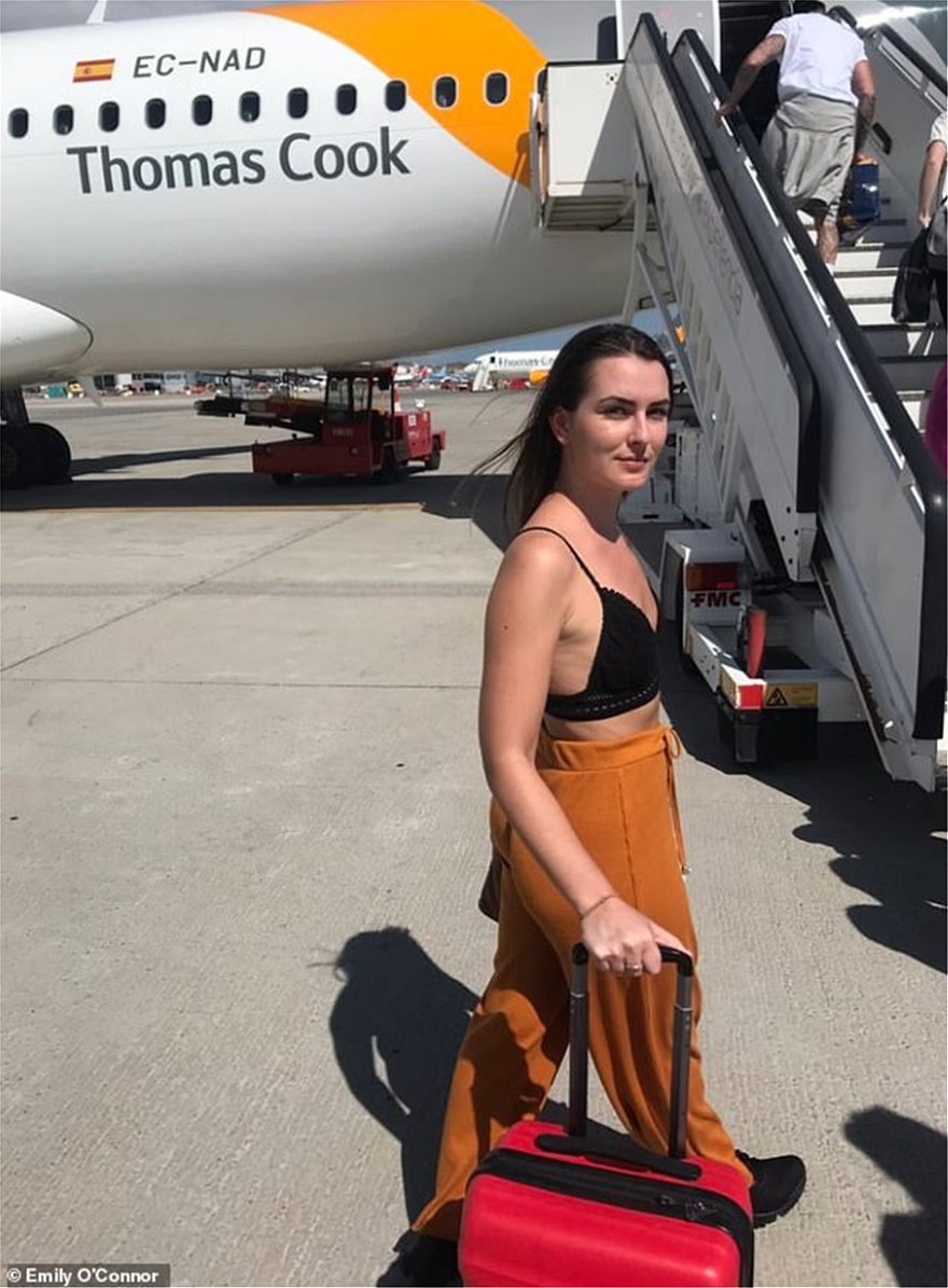 Σοκ υπέστη η νεαρή Εμιλι Ο’ Κόνορ όταν καθώς επιβιβαζόταν σε πτήση της Thomas Cook για διακοπές στα Κανάρια, οι υπεύθυνοι της είπαν να «σκεπαστεί ή να κατέβει από το αεροπλάνο»….