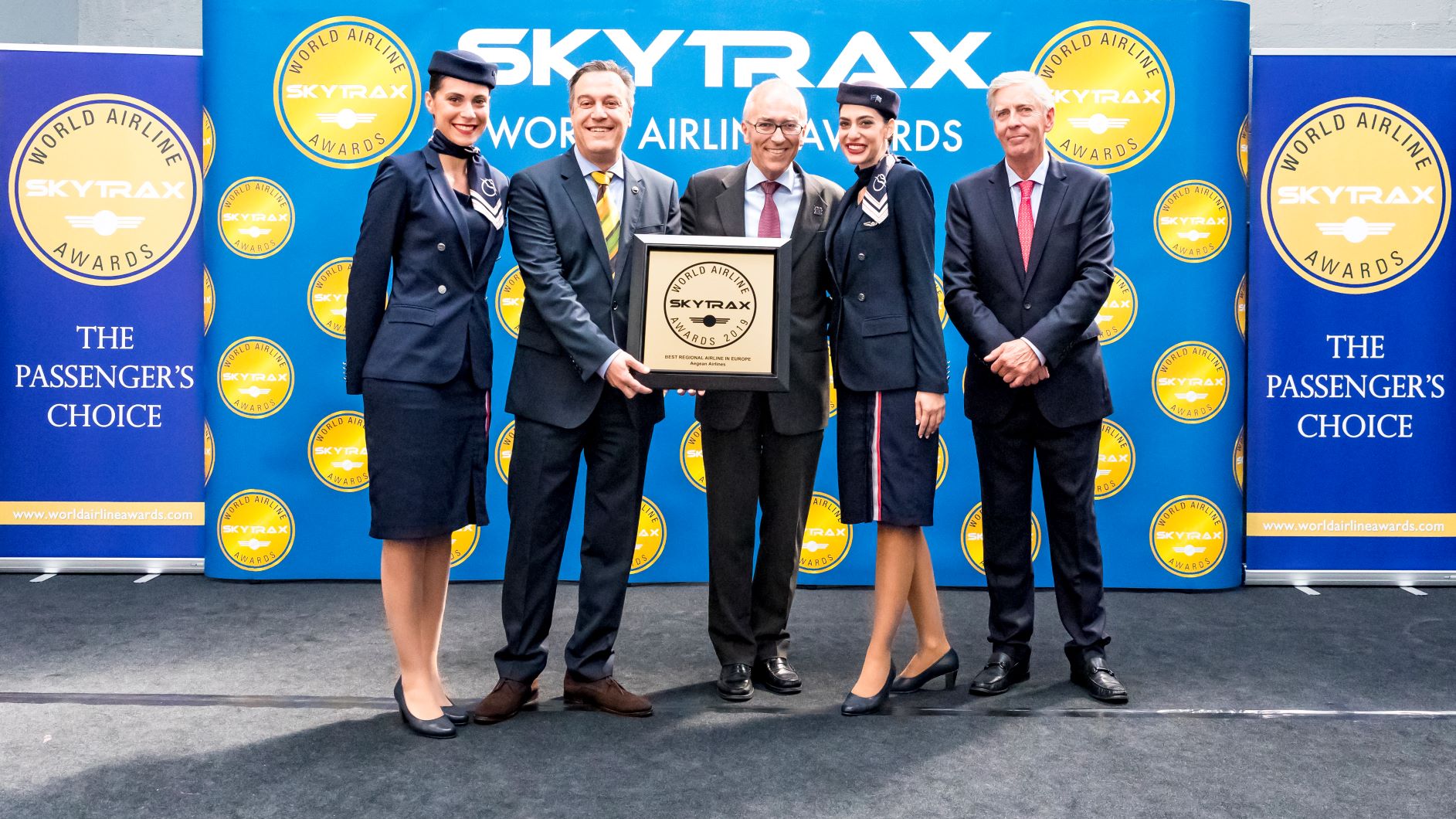 Η Aegean αναδείχθηκε για ακόμη μία χρονιά «Καλύτερη Περιφερειακή Αεροπορική Εταιρεία στην Ευρώπη» στα βραβεία επιλογής επιβατών, Skytrax World Airline Awards 2019. Η απονομή του βραβείου πραγματοποιήθηκε στις 18 Ιουνίου 2019 κατά τη διάρκεια του Paris Air Show στο αεροδρόμιο Le Bourget στο Παρίσι.