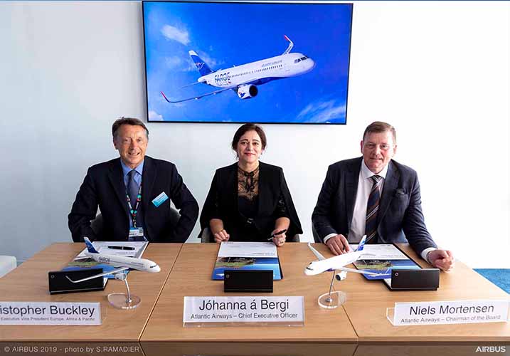 Η Atlantic Airways, η αεροπορική των Νήσων Φερόες, υπέγραψε συμφωνία αγοράς με την Airbus για δύο αεροσκάφη A320neo. Σύμφωνα με πληροφορίες, η επιλογή του κινητήρα θα γίνει αργότερα.