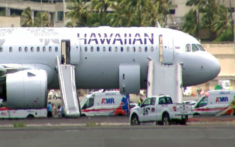 Η Hawaiian Airlines δήλωσε ότι 184 επιβάτες και επτά μέλη πληρώματος χρησιμοποίησαν τσουλήθρες εκκένωσης για να κατεβούν από το αεροπλάνο, καθώς δήλωσε έκτακτη ανάγκη κατά την πτήση και προσγειώθηκε στη Χονολουλού.