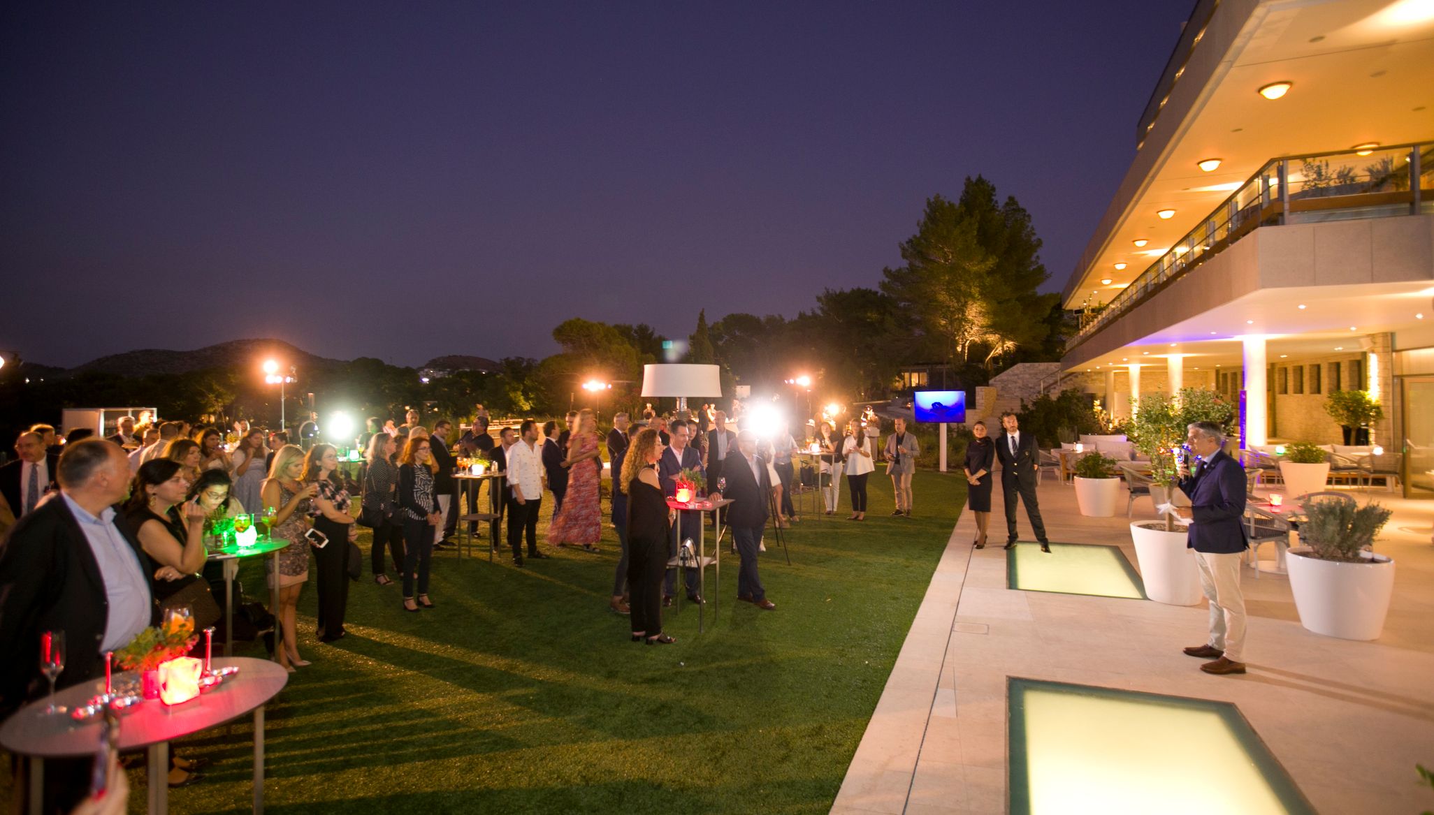Eιδικότερα, οι καλεσμένοι είχαν την ευκαιρία να απολαύσουν ένα αυθεντικό Ιταλικό “Aperi-cena” με φόντο την υπέροχη θέα της θάλασσας, υπό τους ήχους χαλαρωτικής μουσικής που ταίριαζε απόλυτα στην μαγευτική ατμόσφαιρα της βραδιάς. Το μενού της δεξίωσης περιλάμβανε γευστικές gourmet προτάσεις υπό την επιμέλεια του Ιταλού σεφ του ξενοδοχείου Four Seasons συνοδευόμενες από κρασί, Prosecco και απολαυστικά cocktails.
