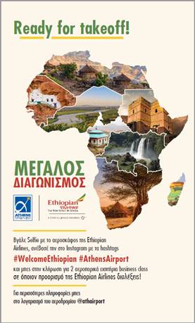 Mε αφορμή την άφιξη της Ethiopian Airlines στην Αθήνα με απευθείας πτήσεις όλη τη χρονιά, ξεκίνησε εχθές o πρώτος διαγωνισμός του Διεθνούς Αερολιμένα Αθηνών στο Instagram μέσα από τον επίσημο λογαριασμό του: @athairport.