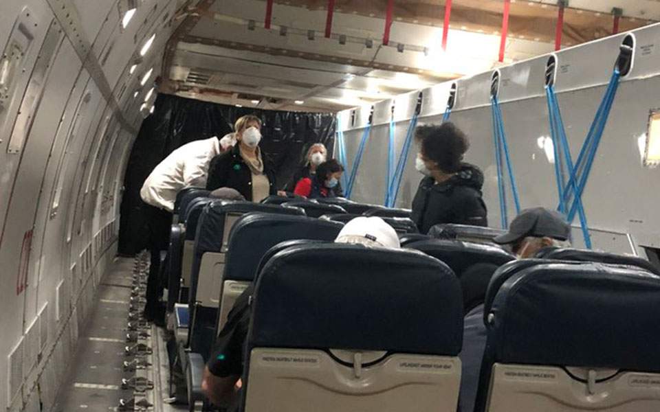 Οι New York Times έδωσαν στη δημοσιότητα φωτογραφία μέσα από το αεροπλάνο, το οποίο μετέφερε τους Αμερικανούς επιβάτες του κρουαζιερόπλοιου Diamond Princess, στο πλαίσιο της διαδικασίας επαναπατρισμού τους.