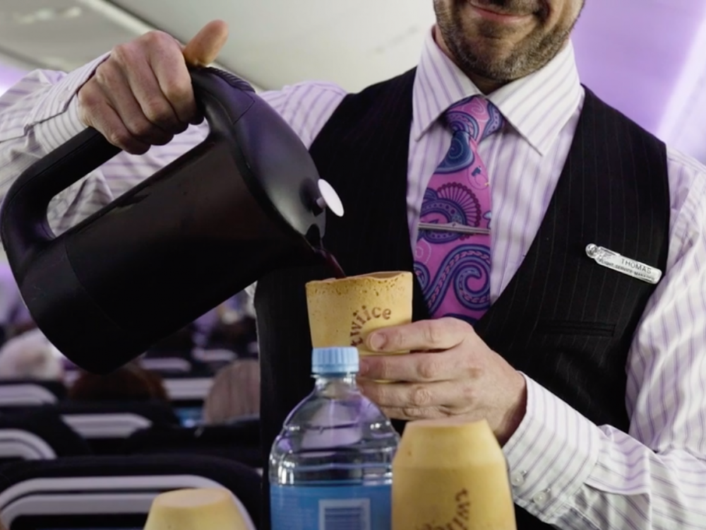 Η υπεύθυνη εξυπηρέτησης επιβατών, Niki Chave, αναφέρει ότι η εταιρεία σερβίρει το χρόνο 8 εκατομμύρια καφέ την ώρα της πτήσης. Μέχρι στιγμής, οι πελάτες που έχουν δοκιμάσει τα βρώσιμα ποτήρια έχουν δώσει την έγκρισή τους.