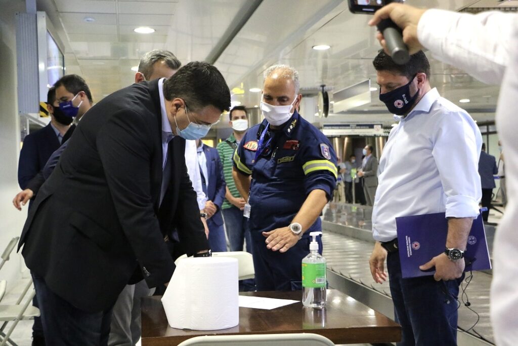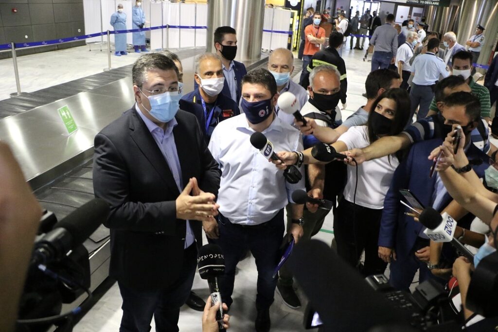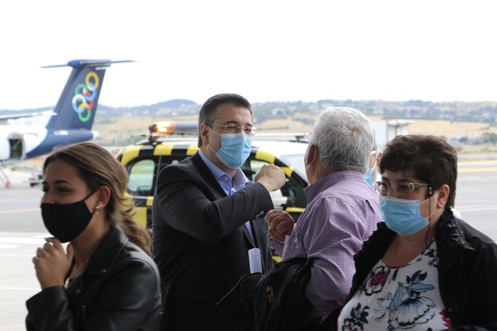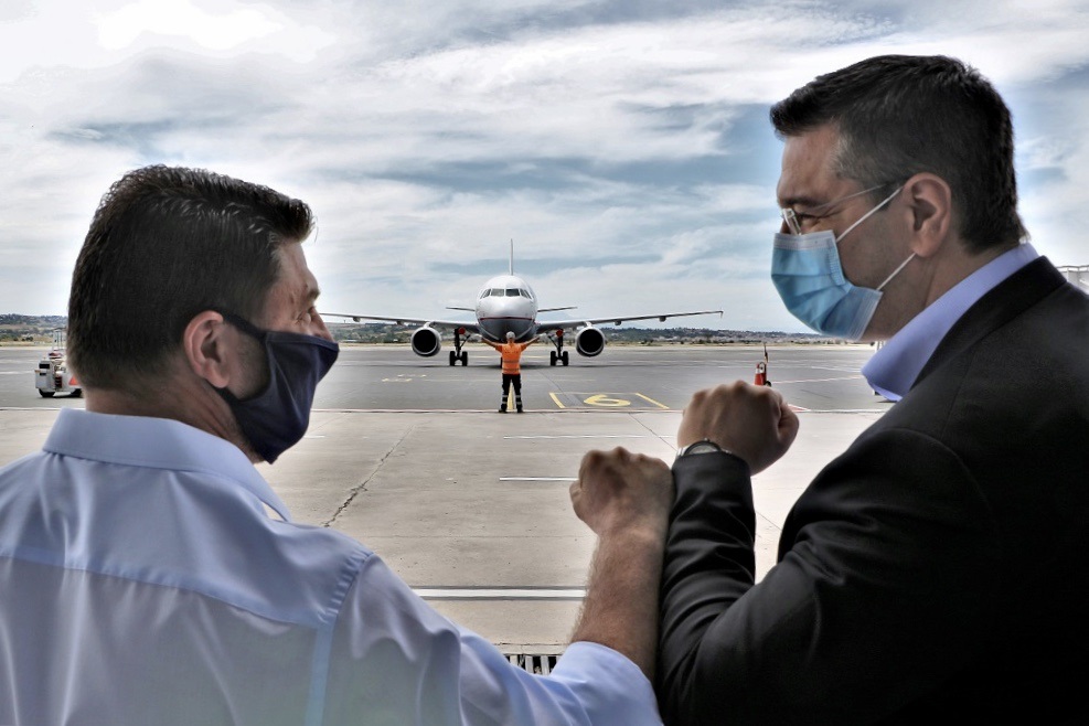 Τους επιβάτες της πρώτης πτήσης που προσγειώθηκε στο αεροδρόμιο «Μακεδονία» από το εξωτερικό υποδέχτηκε εχτές ο Περιφερειάρχης Κεντρικής Μακεδονίας Απόστολος Τζιτζικώστας, με τον Υφυπουργό Πολιτικής Προστασίας και Διαχείρισης Κρίσεων Νίκο Χαρδαλιά και τον Δήμαρχο Θεσσαλονίκης Κωνσταντίνο Ζέρβα.