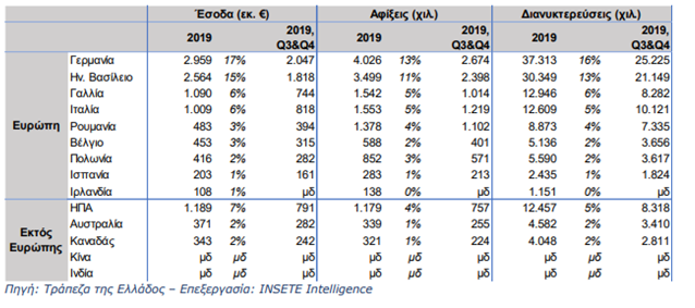 Συγκεκριμένα για τις πέντε σημαντικότερες τουριστικές αγορές της Ελλάδας: