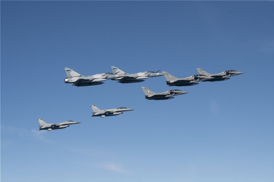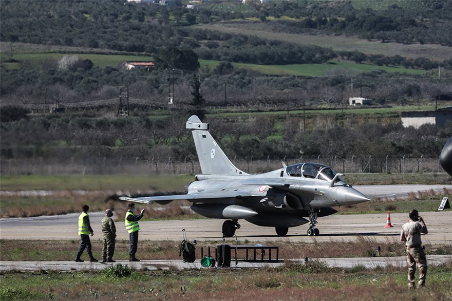 Τα Rafale απογειώθηκαν από το αεροδρόμιο της Τανάγρας και εκτέλεσαν μαζί με ελληνικά F-16 και Mirage 2000 σύνθετες αεροπορικές ασκήσεις σε όλο το εύρος του FIR Αθηνών.