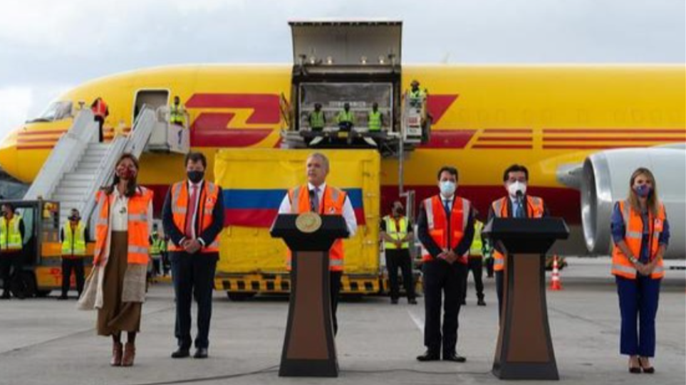 Η Κολομβία παρέλαβε την πρώτη ποσότητα 50.000 δόσεων του εμβολίου της Pfizer/BioNTech για τον νέο κορωνοϊό, με αεροσκάφος της DHL που προσγειώθηκε στο αεροδρόμιο El Dorado. Πρόκειται για την πρώτη ποσότητα από μια παρτίδα 1,65 εκατ. δόσεων που αναμένεται να έχει παραδοθεί τις προσεχείς τρεις εβδομάδες.