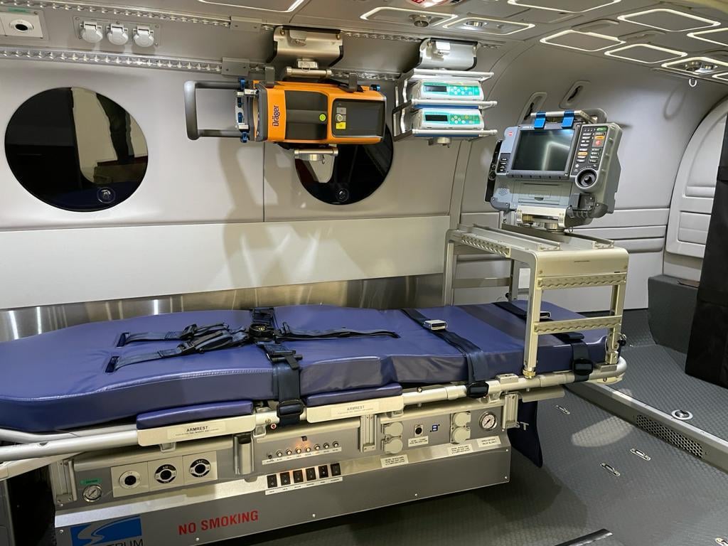 Tα αεροσκάφη Beechcraft King Air 350 είναι εξοπλισμένα με τα πλέον σύγχρονα όργανα αεροναυτιλίας. Την υγειονομική διασκευή της καμπίνας των δύο νέων αεροσκαφών ανέλαβε μία από τις πιο αναγνωρισμένες εταιρείες παγκοσμίως, η οποία εξειδικεύεται αποκλειστικά στο αντικείμενο. Τα αεροσκάφη προσφέρουν τη δυνατότητα αεροδιακομιδής δύο ασθενών ταυτόχρονα, ενώ διαθέτουν ειδικό μηχανισμό ανύψωσης των φορείων, με αποτέλεσμα να εξασφαλίζεται η άνετη είσοδος και έξοδος ασθενών και τραυματιών. Επιπλέον, τα αεροσκάφη περιλαμβάνουν υποδομή μεταφοράς θερμοκοιτίδας για τη διακομιδή νεογνών, καθώς και θάλαμο αρνητικής πίεσης (κάψουλα), ο οποίος χρησιμοποιείται για τη μεταφορά ατόμων με μολυσματικές ασθένειες.