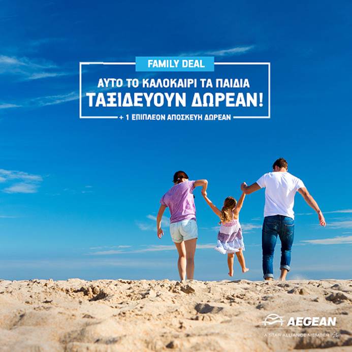 Για περισσότερες λεπτομέρειες, σχετικά με το νέο Summer Family Deal της AEGEAN και τον ολοκληρωμένο οδηγό Aegean For Families για κάθε βήμα του οικογενειακού ταξιδιού επισκεφτείτε την ιστοσελίδα www.aegeanair.com