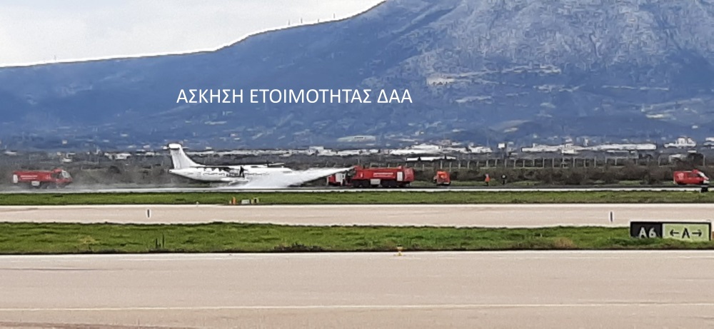 Σύμφωνα με το σενάριο της άσκησης, «Ελικοφόρο αεροσκάφος της αεροπορικής εταιρείας Sky Express που εκτελεί επιβατική πτήση από την Αθήνα προς την Κέρκυρα και μεταφέρει 19 επιβάτες και έχει 4 μέλη πλήρωμα, κατά την απογείωση δηλώνει πρόβλημα με φωτιά στον κινητήρα Νο2 και ζητά από τον Πύργο Ελέγχου άμεση προτεραιότητα και βοήθεια εκπέμποντας σήμα κινδύνου (MAYDAY).