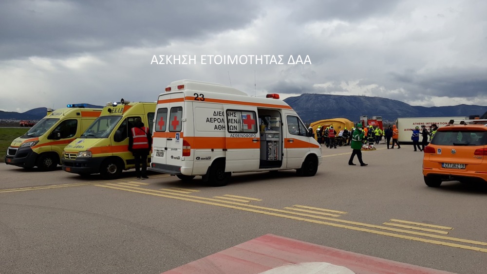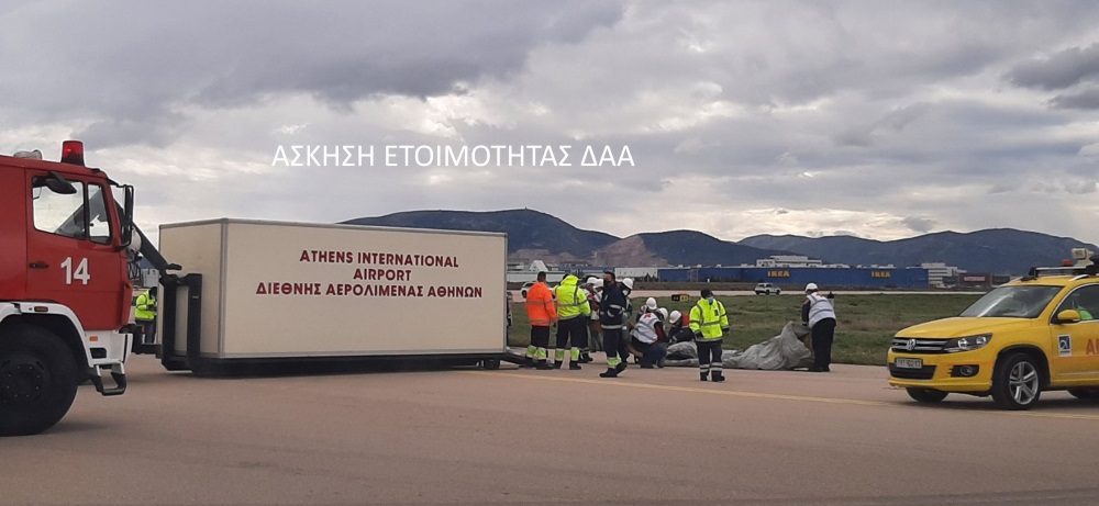 Ο Διεθνής Αερολιμένας Αθηνών διοργανώνει σε ετήσια βάση ασκήσεις αντιμετώπισης καταστάσεων έκτακτης ανάγκης, με σκοπό τη δοκιμή του Σχεδίου Αντιμετώπισης Καταστάσεων Ανάγκης του Αερολιμένα, τον έλεγχο αποτελεσματικότητας και αποδοτικότητας των διαθέσιμων μέσων, την ανταπόκριση των συστημάτων, την εξοικείωση και εξάσκηση του προσωπικού στην αντιμετώπιση συμβάντων και, κυρίως, τη διασφάλιση υψηλού επιπέδου συνεργασίας μεταξύ των εμπλεκόμενων φορέων, διασφαλίζοντας έτσι το υψηλότερο δυνατό επίπεδο ασφάλειας και ετοιμότητας για ανάλογες περιπτώσεις πραγματικών περιστατικών.