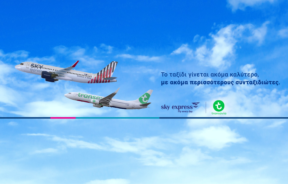 Νέα συνεργασία διασύνδεσης για τη SKY express με τη Γαλλική αεροπορική εταιρία Transavia France, η συγκεκριμένη συνεργασία προσφέρει ακόμη έναν παγκόσμιο στρατηγικό προορισμό, καθώς προβλέπει τη δυνατότητα κράτησης ενιαίου εισιτηρίου στο δίκτυο και των δύο αερομεταφορέων.