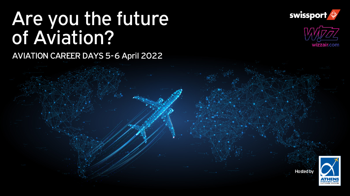 Τα Aviation Career Days της Wizzair.com και της Swissport, με τη φιλοξενία του Διεθνούς Αερολιμένα Αθηνών, αποτελούν ευκαιρία για νέους ανθρώπους από την Ελλάδα να κυνηγήσουν το όνειρό τους για επαγγελματική αποκατάσταση και καριέρα στο χώρο των αερομεταφορών και του αεροπορικού ταξιδιού!