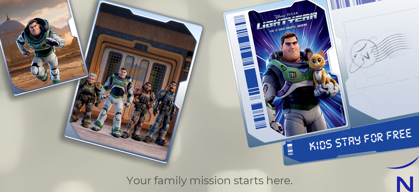 Το LIGHTYEAR είναι μία περιπέτεια κινουμένων σχεδίων που αφηγείται την ιστορία του θρυλικού στρατιώτη του διαστήματος Μπαζ Λάιτγιαρ και απευθύνεται σε όλη την οικογένεια. Η Novotel επιφυλάσσει σε επισκέπτες, θαυμαστές και ακόλουθους ειδικές προσφορές, εκπλήξεις και διασκεδαστικές δραστηριότητες εμπνευσμένες από την ταινία σε επιλεγμένα ξενοδοχεία της σε 50 συμμετέχουσες χώρες σε όλο τον κόσμο. Η συνεργασία της Novotel για διάφορες ταινίες με τη Disney και την Pixar έχει ήδη αποδειχθεί ιδιαιτέρως επιτυχημένη με το λανσάρισμα τριών ταινιών μέχρι στιγμής: ΦΥΓΑΜΕ, SOUL και ΛΟΥΚΑ.