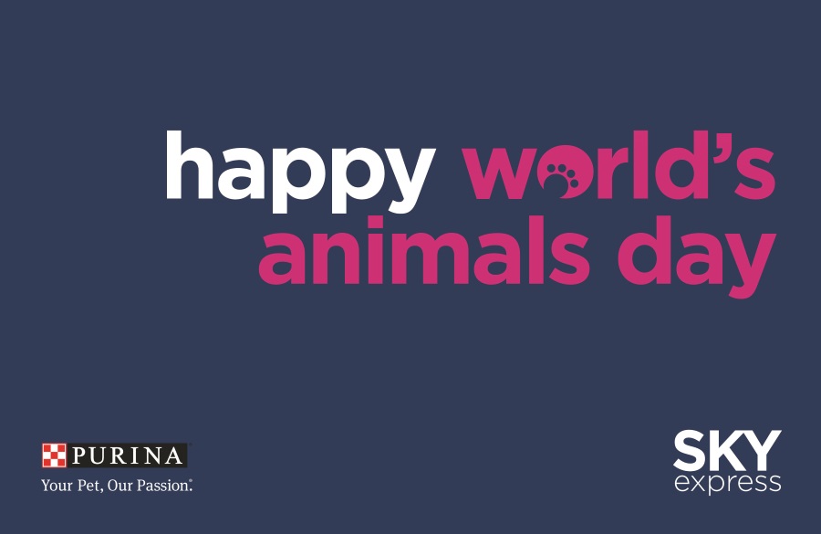 Παγκόσμια Ημέρα Ζώων η 4η Οκτωβρίου και η SKY express σε συνεργασία με την PURINA αφιερώνουν όλο τον μήνα στην επιβράβευση των επιβατών που ταξιδεύουν με τα κατοικίδιά τους.