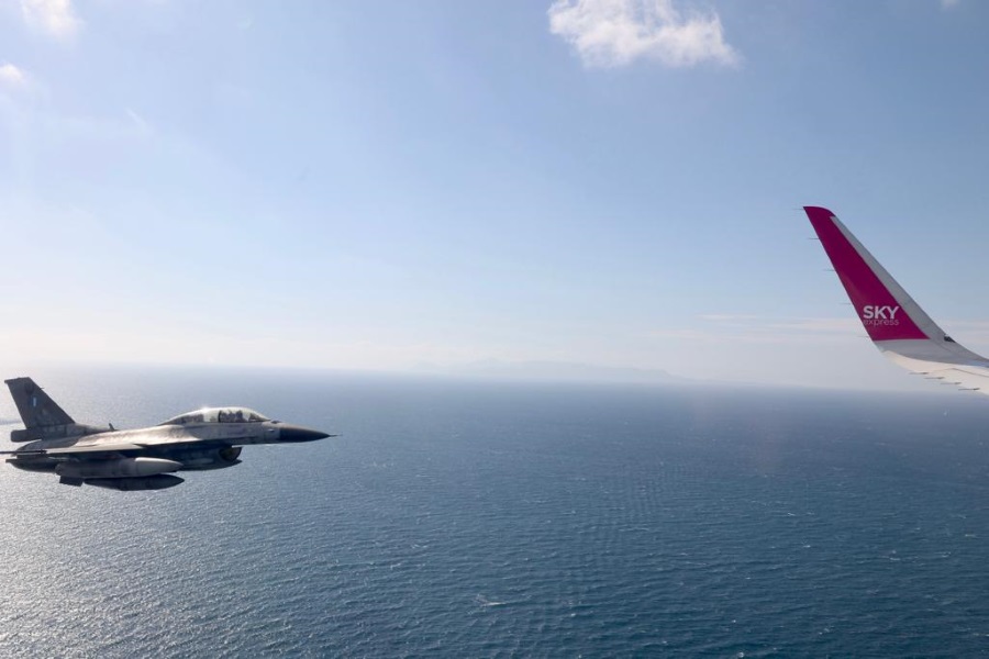 Σε απόλυτο συντονισμό και άψογη συνεργασία, οι κυβερνήτες της Ελληνικής Πολεμικής Αεροπορίας και της SKY express προσέφεραν ένα μοναδικό θέαμα που εντυπωσίασε τους παρευρισκόμενους.
