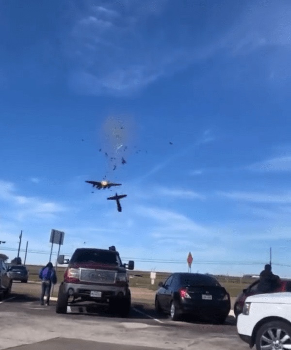 Δύο αεροσκάφη συγκρούστηκαν στον αέρα κατά τη διάρκεια αεροπορικής επίδειξης στο Ντάλας των ΗΠΑ για τον Β΄Παγκόσμιο Πόλεμο.